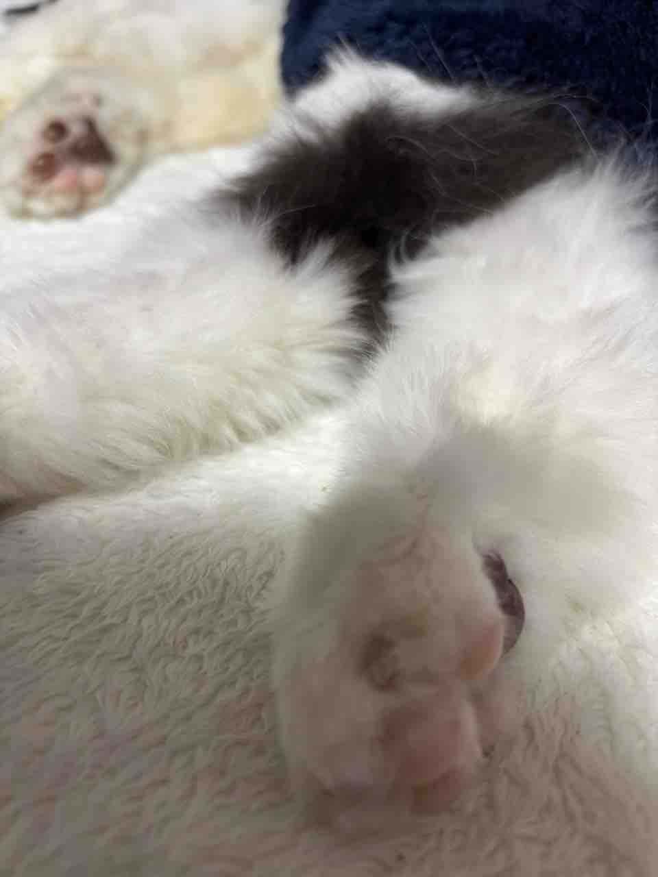 ミーコの頭も少し動き出して、手が伸び〜をして命が戻ってきてるのかな、って考える。
